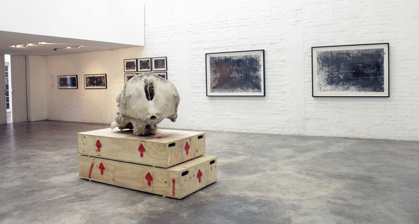 For these drawings on blackboard paint and paper, I was interested in combining two different ways of looking at an elephant skull. The first is that associated with close observational drawing where acute visual perception plays a vital role. (Most commonly in art we associate it with life drawing or sometimes with landscape painting, for example).