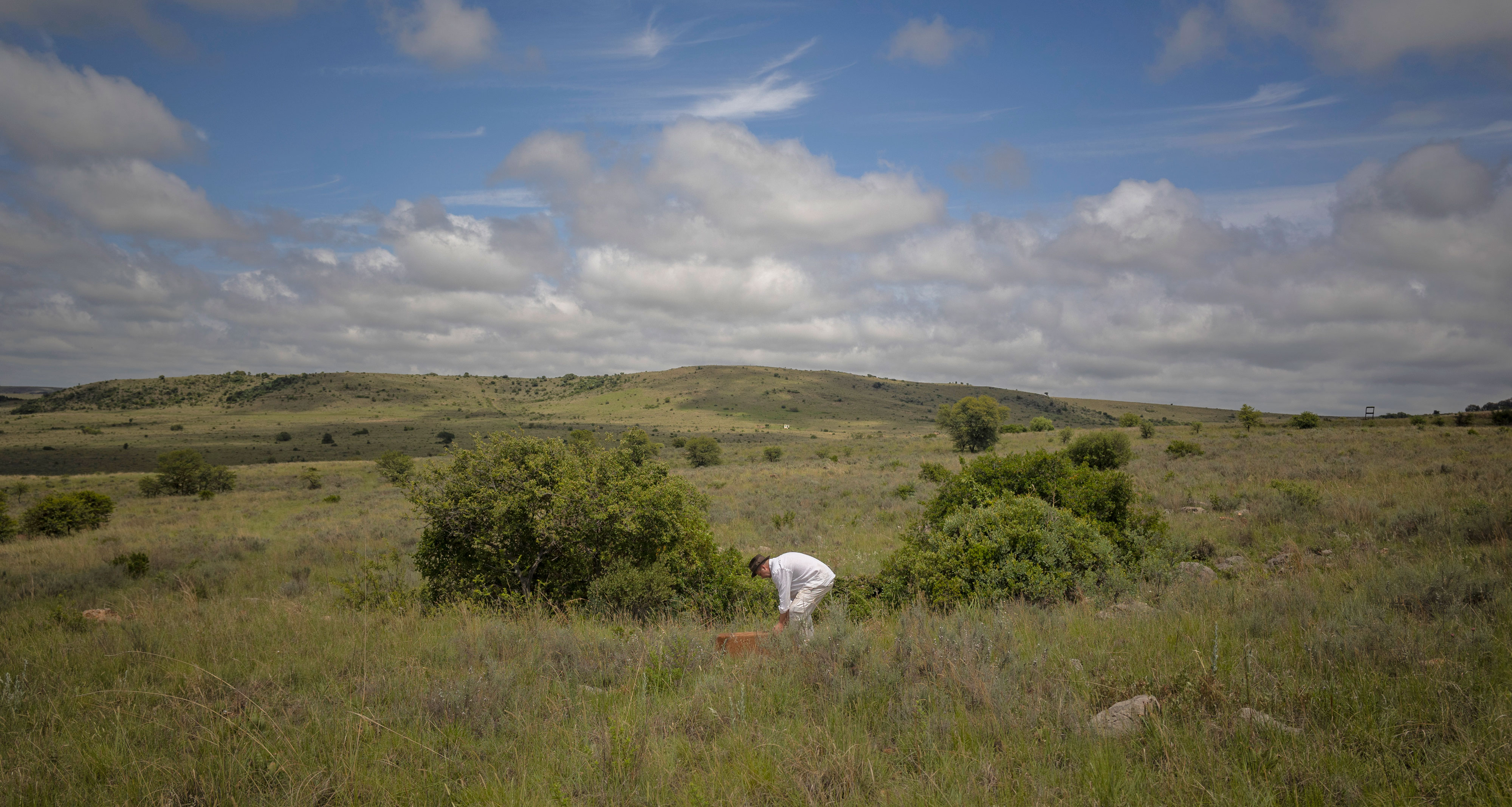 Photographic documentation of a site-specific installation of a clay brick made to the artists weight (101kg) in the Nirox Sculpture Park, Cradle of Humankind, South Africa.
