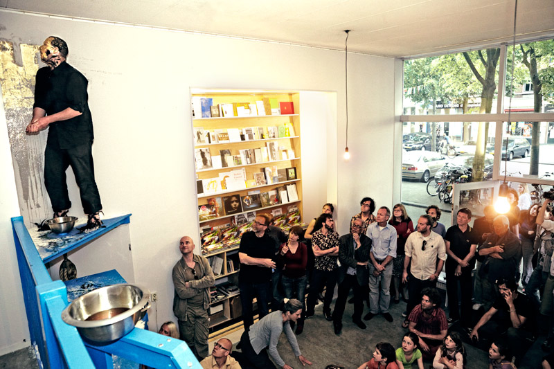 With the help of De Zwarte Ruiter, I constructed a space in the entrance to the gallery whereby its corner would suggest something like the prow of a ship. For the performance I would transform myself into a figurehead. In turn, the audience was transformed into passengers aboard the vessel for the duration of the performance. I also wrote three fictional texts in which the figurehead speaks of its experiences whilst at sea.